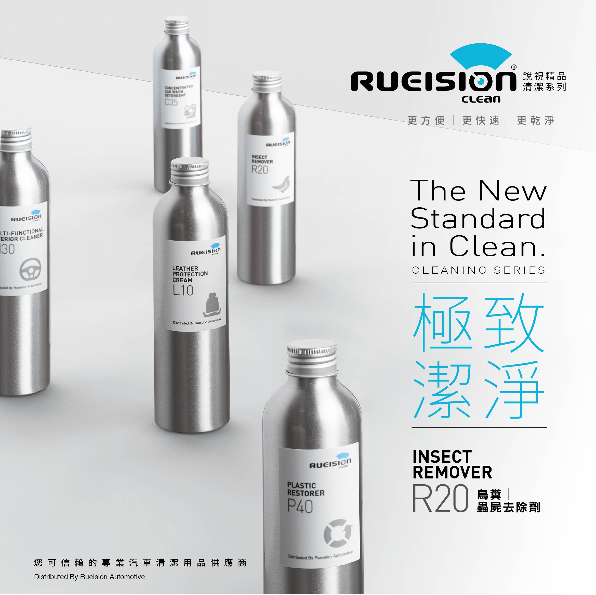 Rueision R20 鳥糞蟲屍去除劑,主打「乳化分解 × 好擦好沖 × 不傷車漆」, 針對附著髒汙做重點處理,讓清潔更快、收尾更乾淨,降低乾磨風險。