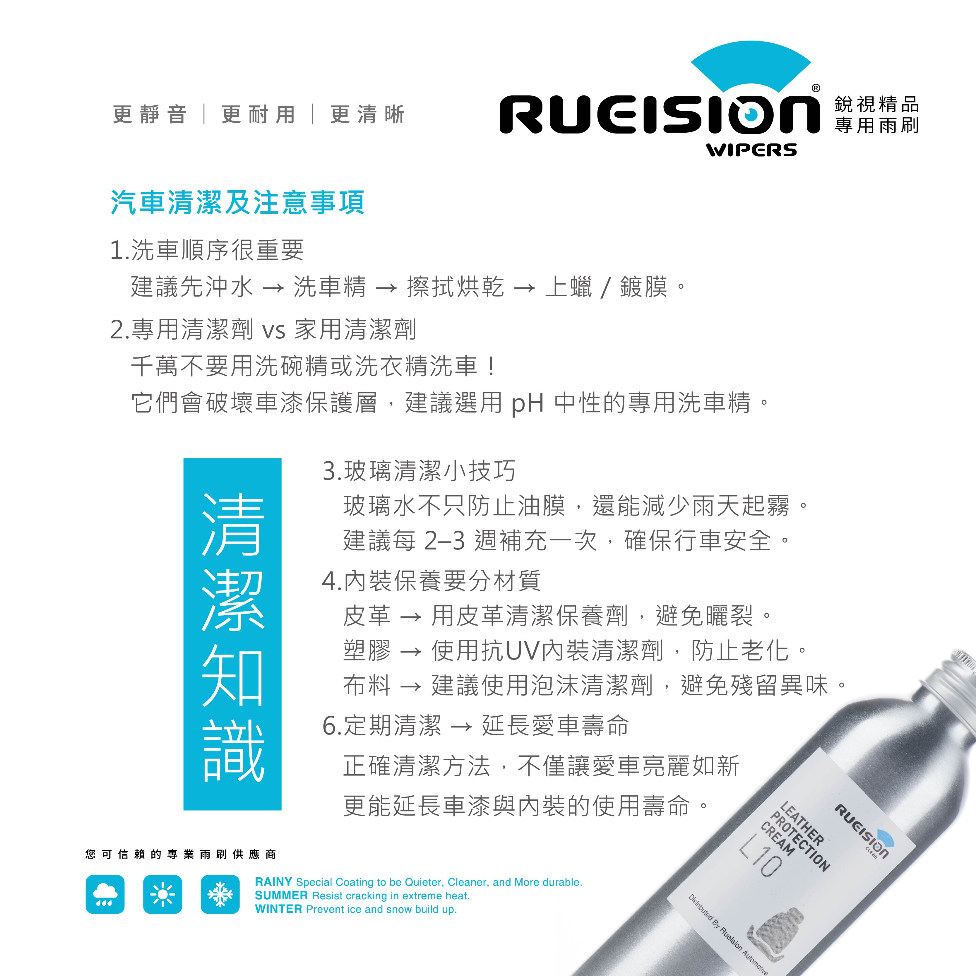 Rueision 銳視長期配合汽車美容店、保養廠、洗車業者,提供品質穩定的雨刷、清潔保養用品。
