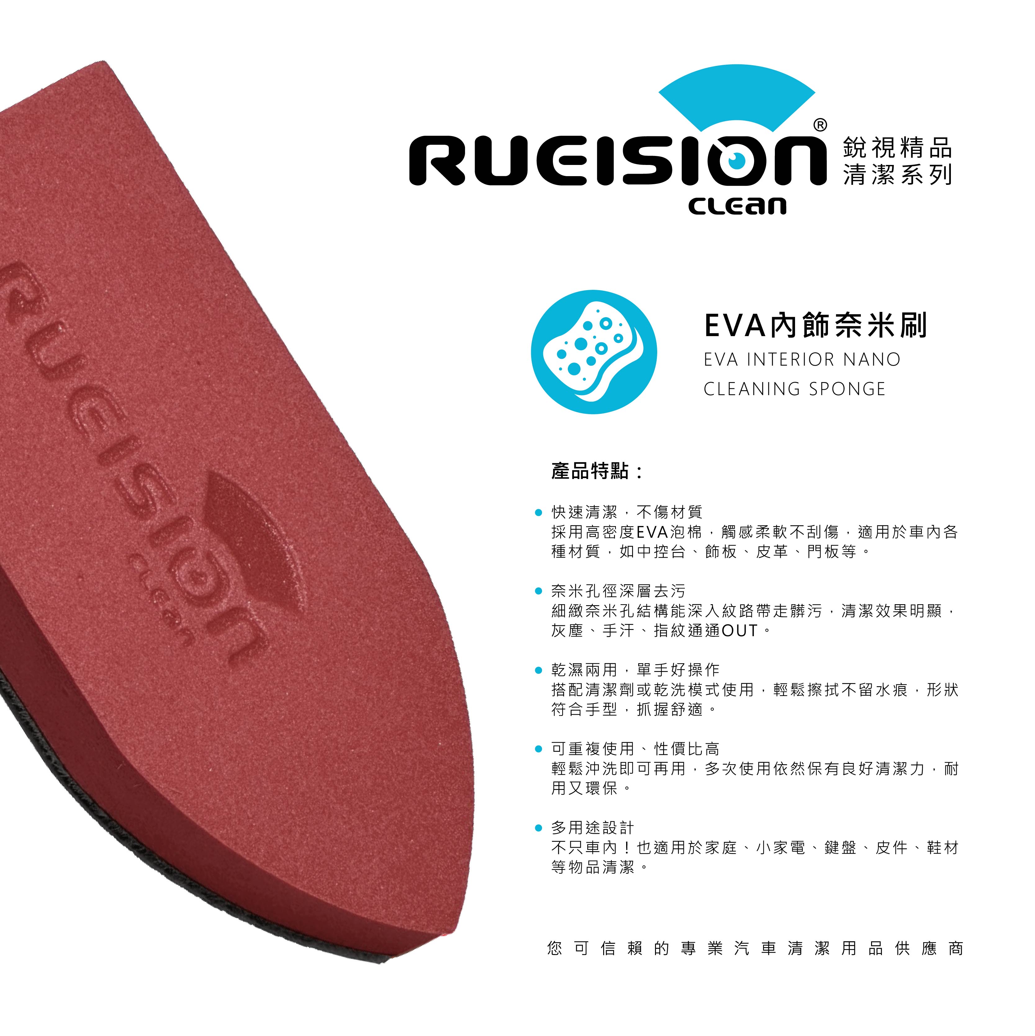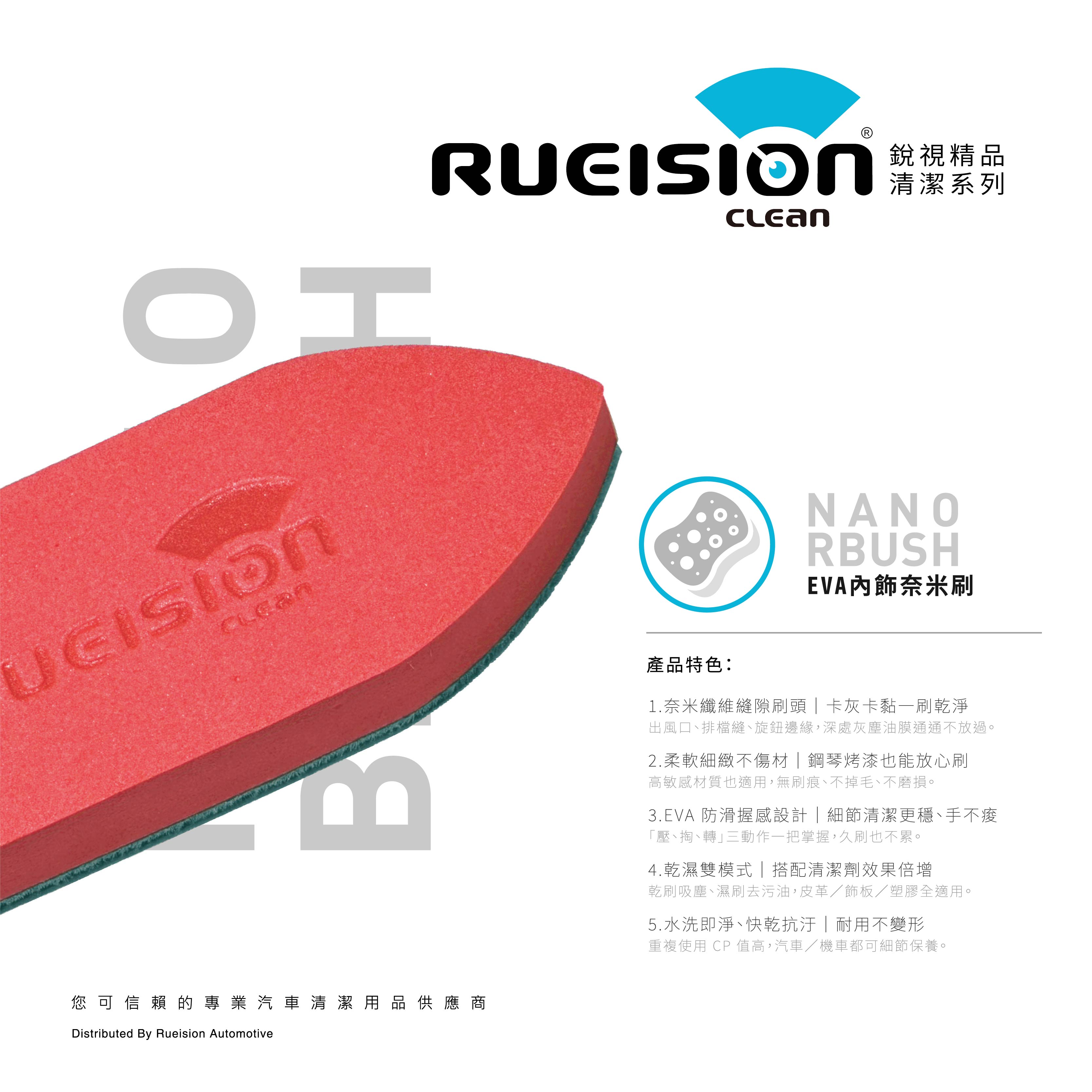 Rueision EVA內飾奈米刷,結合高密度 EVA 舒適握感與奈米細孔清潔層,原本專為